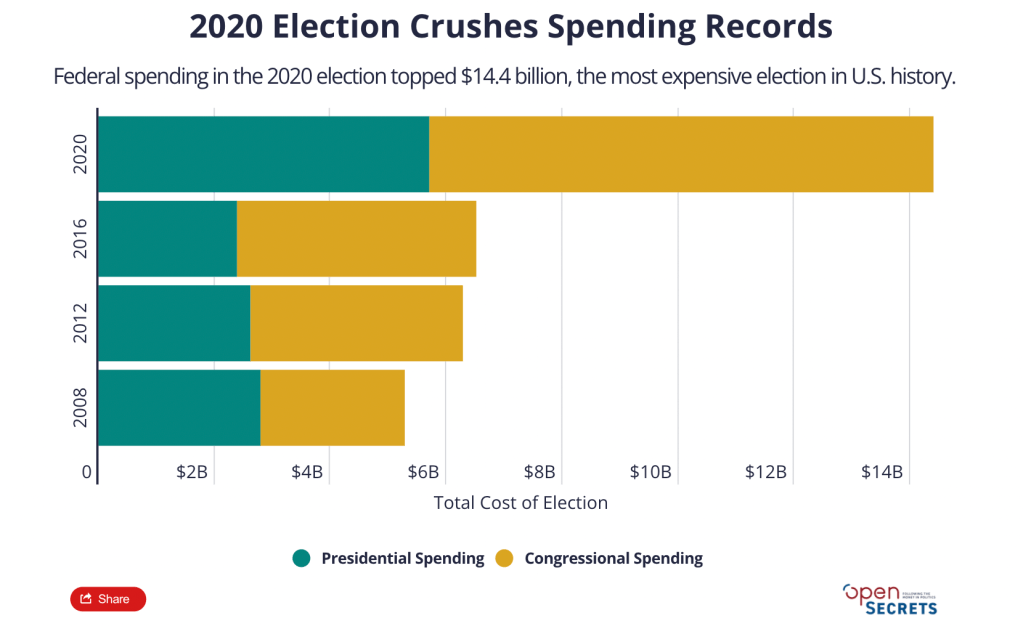 Some may believe that all the big money going in to elections is the result of the Republicans yet according to the records the Democrats spent significantly more in 2020. Is that why they had won a small majority in both House and Senate for 2020? Is it all down to MONEY?